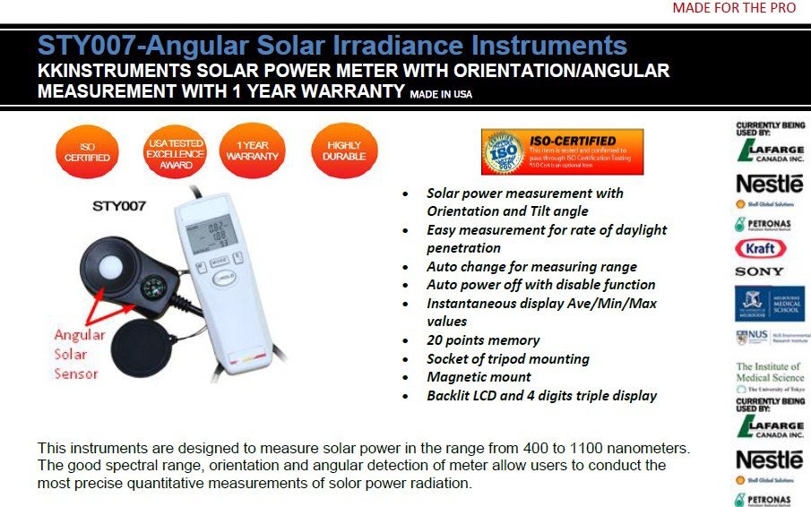 Featured item STY007-KKINSTRUMENTS ADVANCED SOLAR POWER METER WITH ORIENTATION/ANGULAR MEASUREMENT
